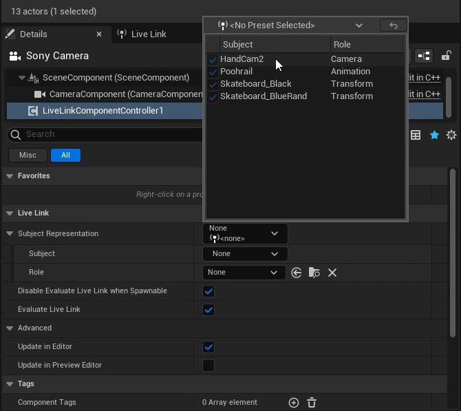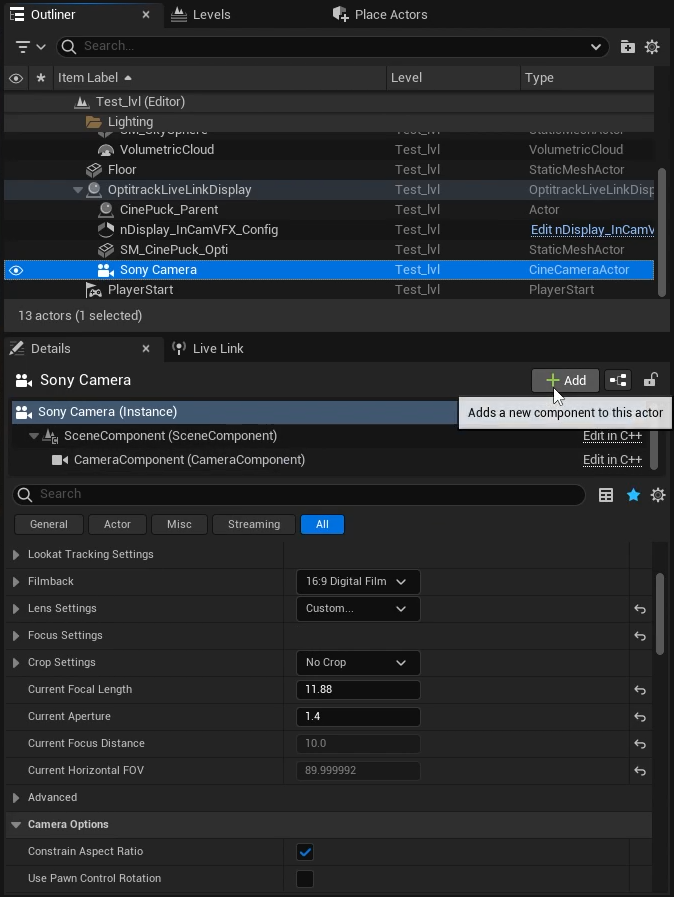Unreal Engine: Live Link Camera Stream Setup