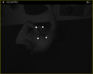 To check whether the camera setting is optimized, it is best to check both the grayscale mode images and tracking mode (Object or Precision) images and make sure the marker reflection stands out from the image. You switch a camera into grayscale mode either in Motive or by using the Aim Assist button for supported cameras. In Motive, you can right-click on the Cameras Viewport and switch the video mode in the context menu, or you can also change the video mode through the Properties pane.
