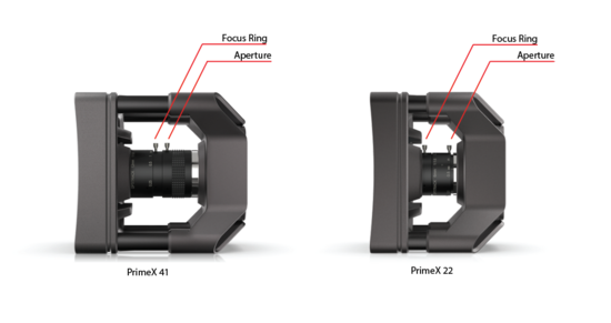 Increase the f-stop setting in the Prime cameras to decrease the aperture size of the lenses. The f-stop setting determines the amount of light that is let through the lenses, and increasing the f-stop value will decrease the overall brightness of the captured image allowing the system to better accommodate for sunlight interference. Furthermore, changing this allows camera exposures to be set to a higher value, which will be discussed in the later section. Note that f-stop can be adjusted only in PrimeX 41, PrimeX 22, Prime 41*, and Prime 17W* camera models.