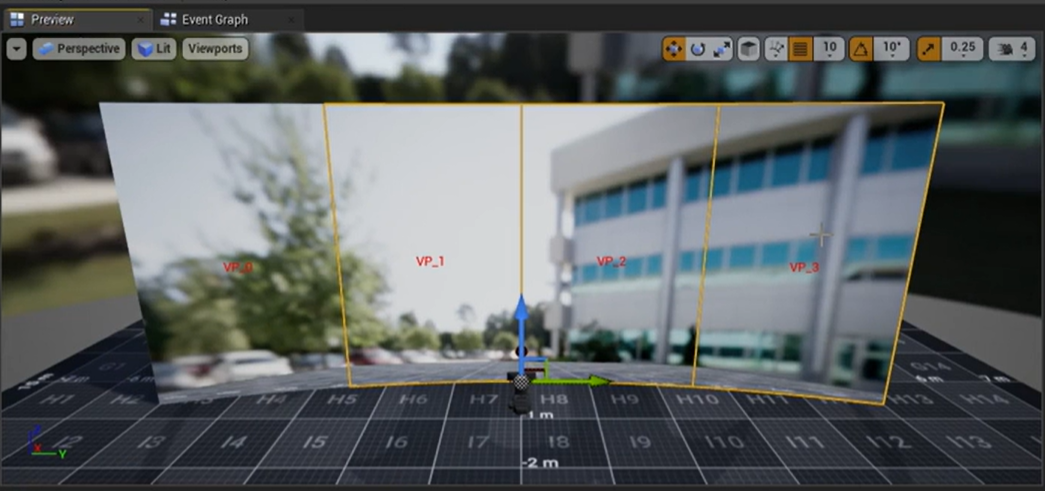You might notice that the edge of the camera’s view is a hard edge. You can fix this and expand the field of view slightly to account for small amounts of lag by going back to your Unreal Engine project into the nDisplay object.