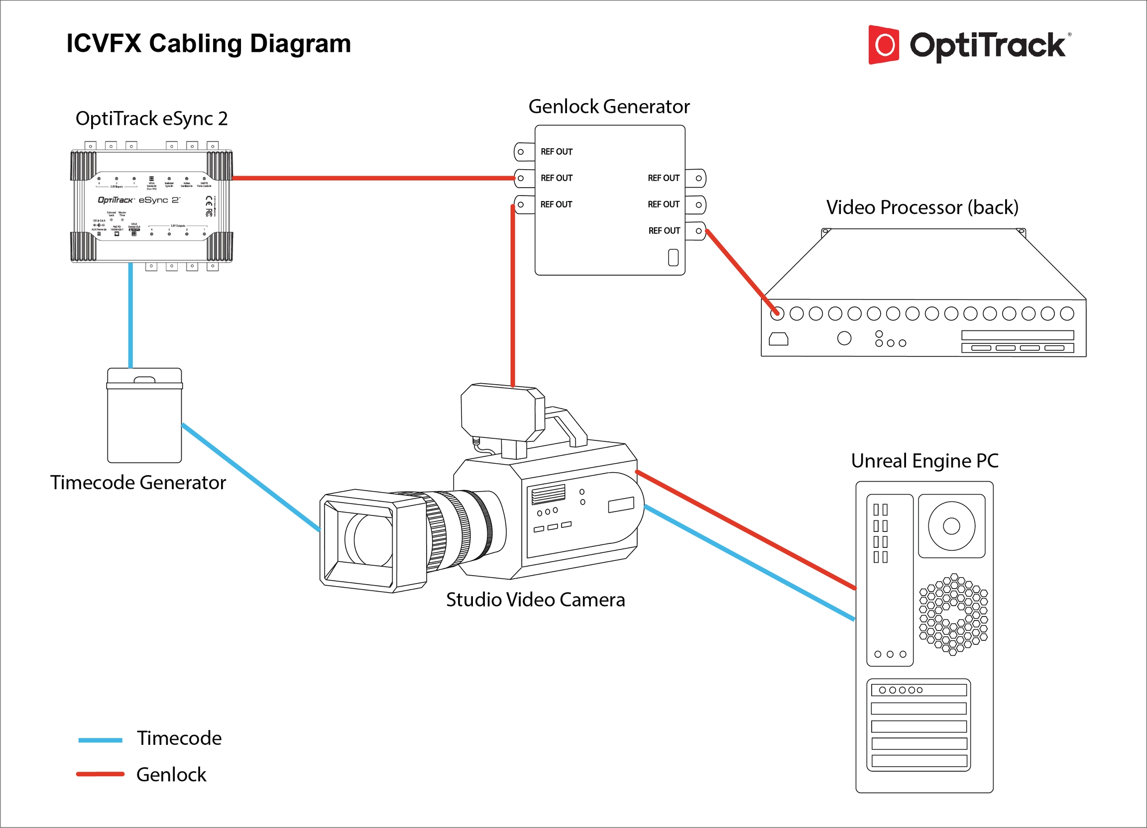 Genlock - The genlock should be fed into Motive, the cinema camera, and the Video Processor(s).