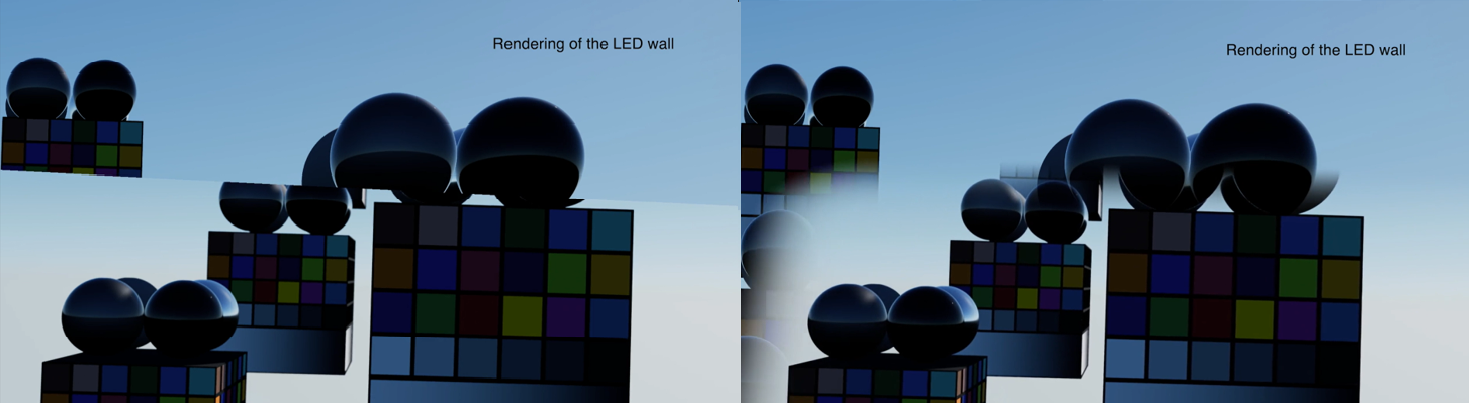 The image on the LED wall should look different when you point the camera at it, since it is calculating for the distortion and position of the lens. From the view of the camera it should almost look like you are looking through a window where the LED wall is located.