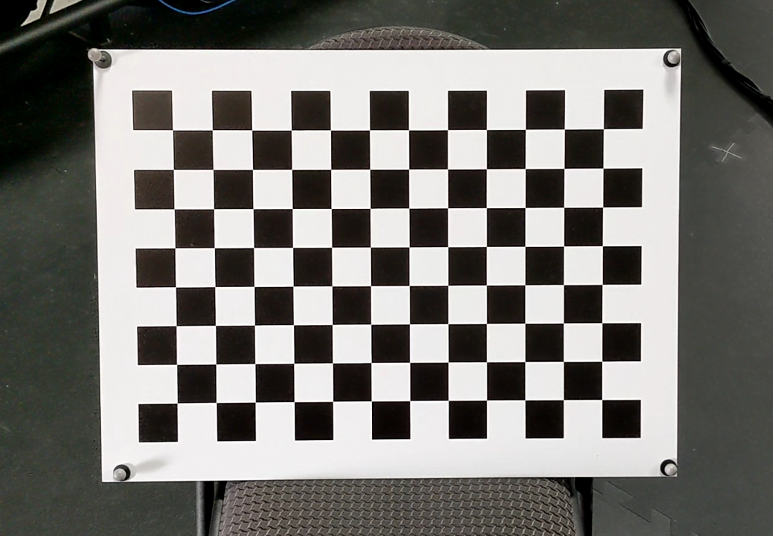 A rigid board with a black and white checkerboard on it is needed to calibrate the lens characteristics. This object will likely be replaced in the future.