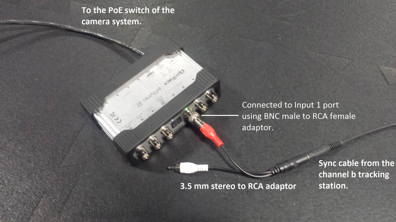 Step 3: Connect the sync output from the channel b base station into the input port 1 of the eSync 2 synchronization hub.