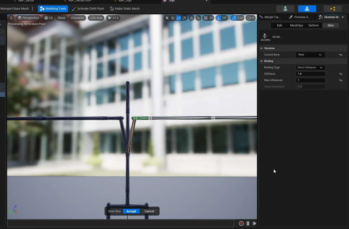 Please note you'll need to bind the mesh to the skeleton in order for your skeletal mesh asset to properly work.