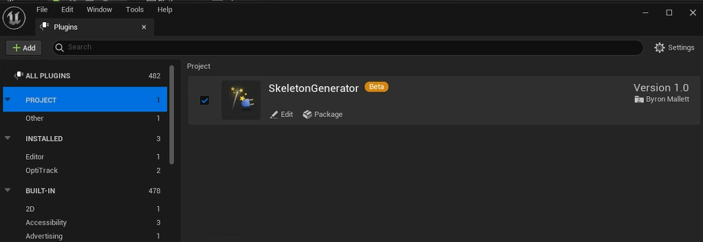 The Live Link Skeletal Mesh Generator is a third-party plugin and is not supported by OptiTrack. More details of this plugin can be found here: Live Link Skeletal Mesh Generator Plugin.