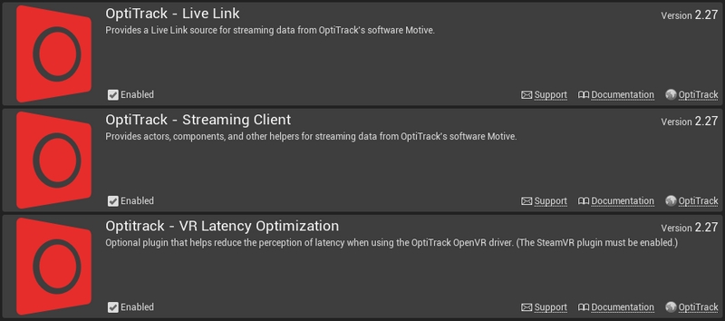 When developing for SteamVR applications using the OpenVR Driver to track the HMD in Unreal Engine 4, the OptiTrack - Streaming Client version 2.27 must be used and the OptiTrack - VR Latency Optimization version 2.27 plugin is suggested. The OptiTrack - VR Latency Optimization provides HMD render compensation that helps to minimize the latency in VR application.