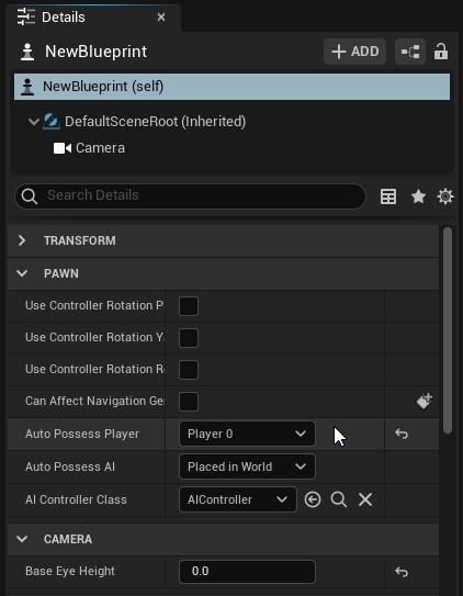 Load created Blueprint in the editor and add a camera component.